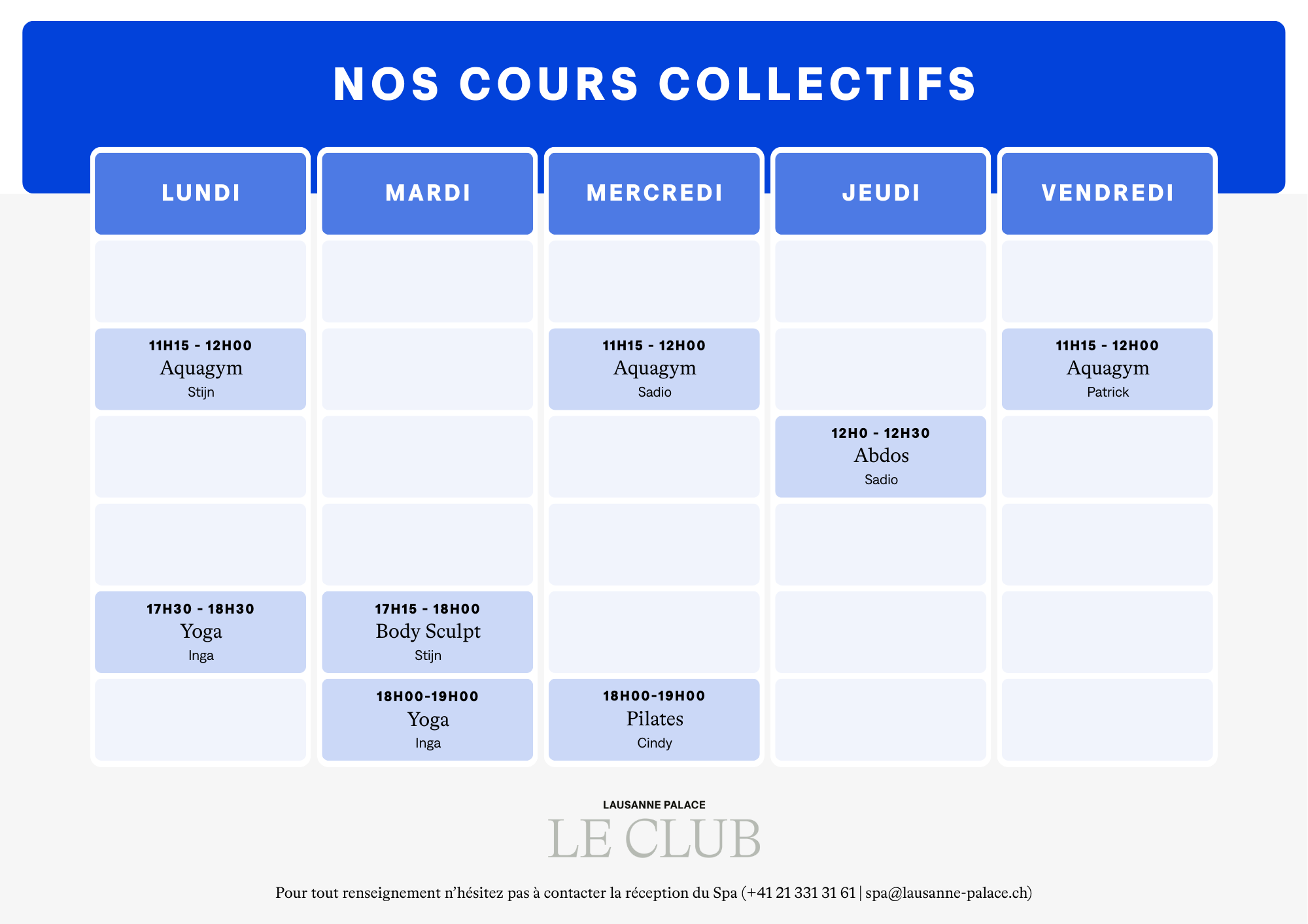 Im Lausanne Palace zeigt sich die Exzellenz auch in einem erstklassigen Sportangebot, das von Sadio Sankhare, unserem Fitnessmanager, individuell gestaltet wird. Mit privaten Sitzungen, maßgeschneidertem Coaching und einem Gruppenkursplan setzt Sadio Sankhare alles daran, den Fitness- und Wohlfühlzielen eines jeden von uns gerecht zu werden. Sadio ist ein leidenschaftlicher Anhänger der Ernährung, die ein unverzichtbarer Verbündeter der Fitness ist. Diese zusätzliche Expertise von Sadio, gekoppelt mit dem Sport und den Pflegeangeboten des Spa des Lausanne Palace, ermöglicht es unseren Kunden, von einer ganzheitlichen Begleitung zu profitieren, die einen globalen Ansatz für Gesundheit und Wohlbefinden bietet.